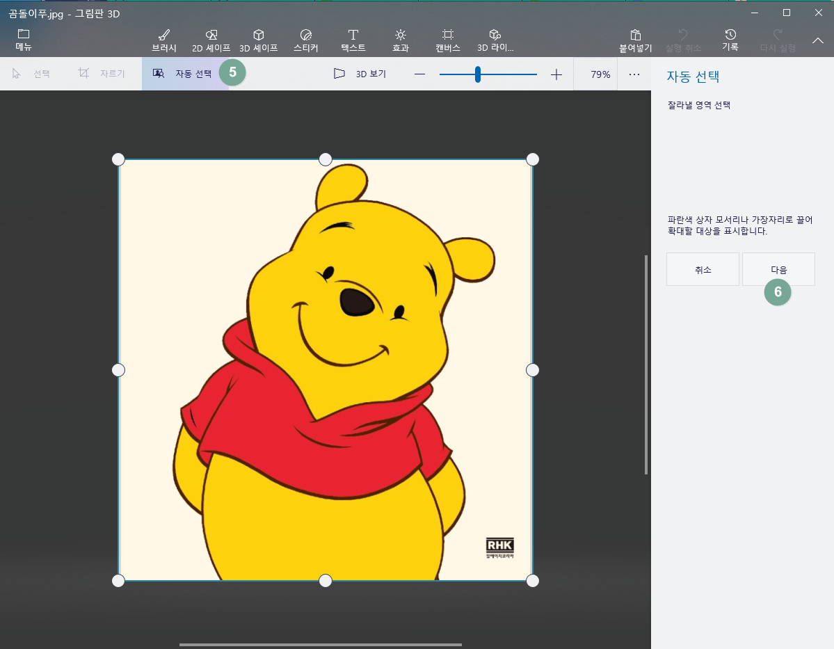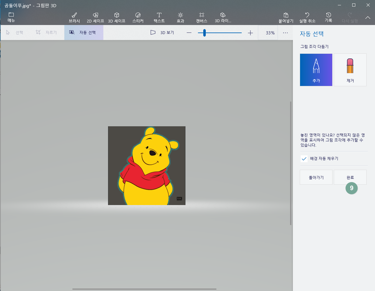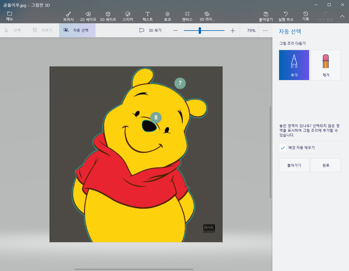 (10) 곰돌이푸를 선택하면 배경과 이미지가 분리되어 잡히는 것을 알 수 있어요.
