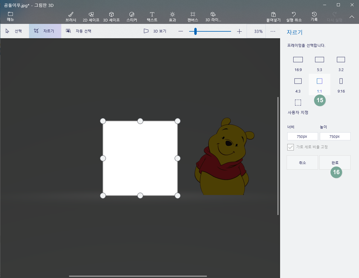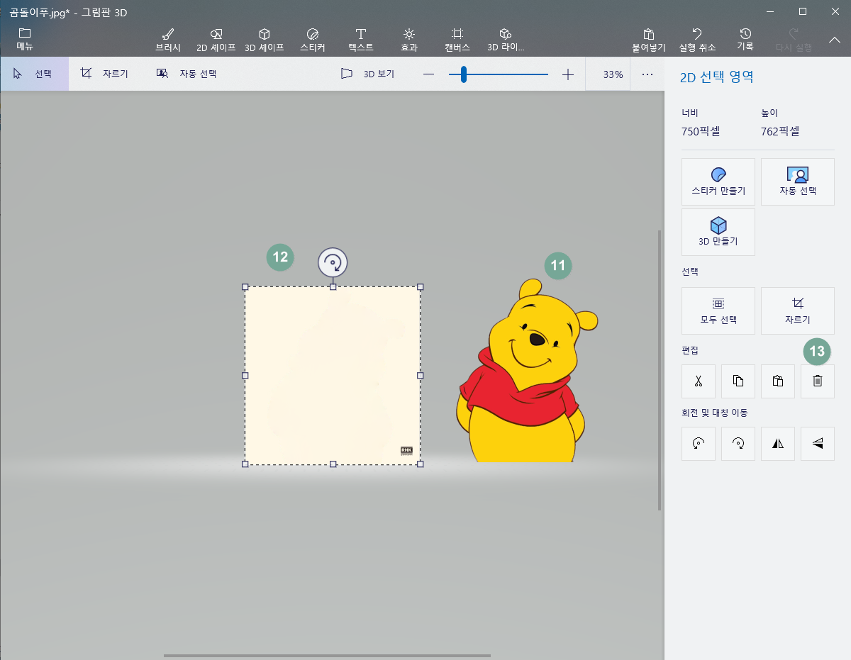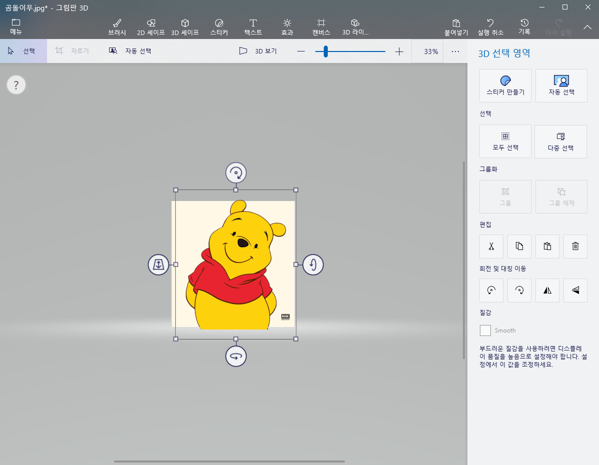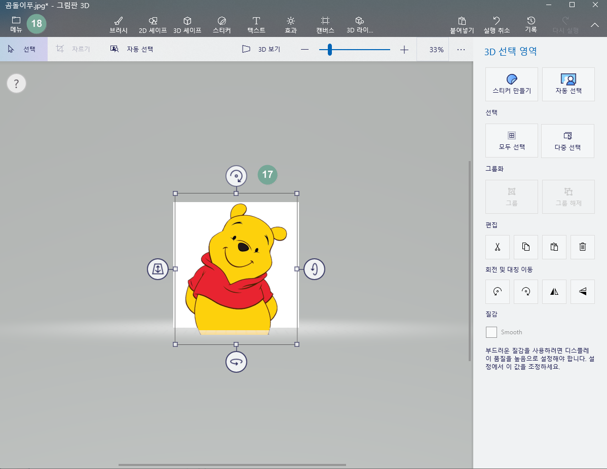 (10) 곰돌이푸를 선택하면 배경과 이미지가 분리되어 잡히는 것을 알 수 있어요.