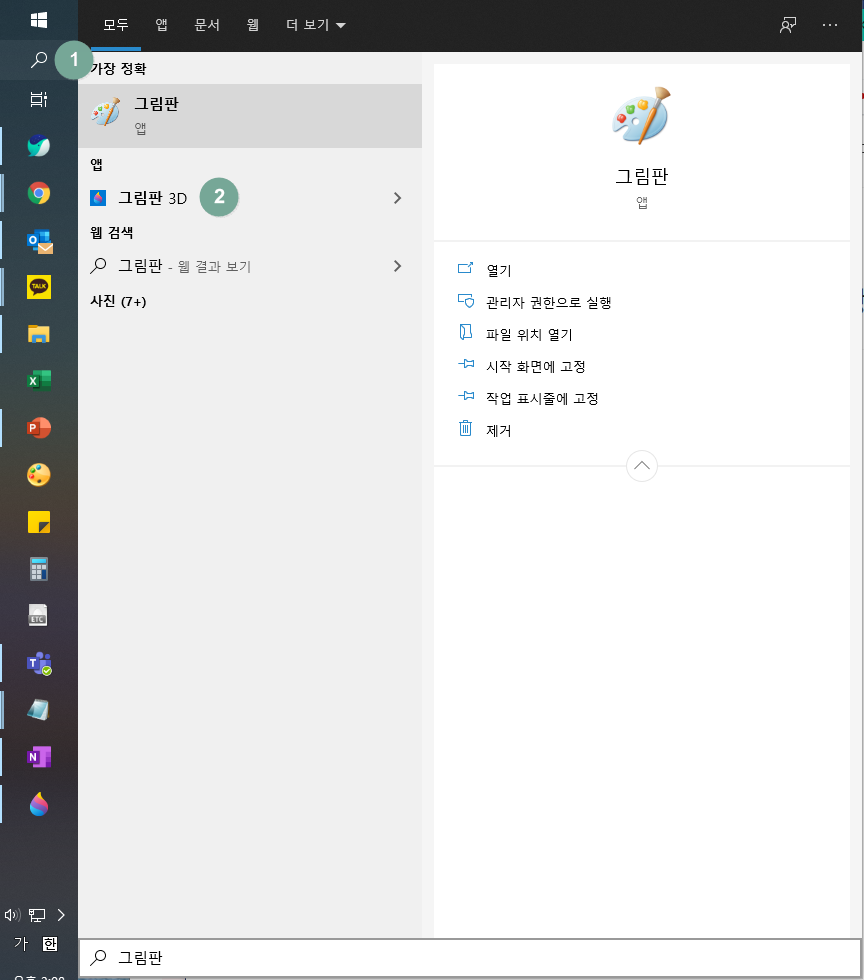 (1) 윈도우 검색창에서 그림판을 검색하세요.